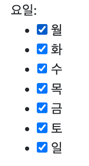 <input type="checkbox" name="yoil" value="0" class="list-inline" id="id_yoil_0">