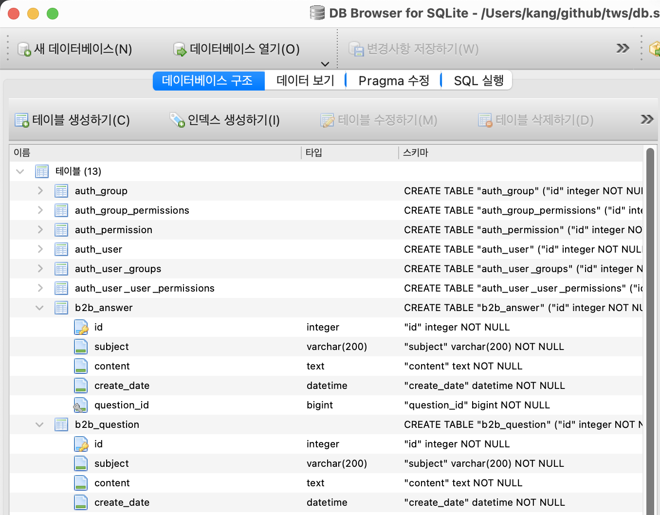 shell 로 Question 객체(테이블)에 레코드 추가.