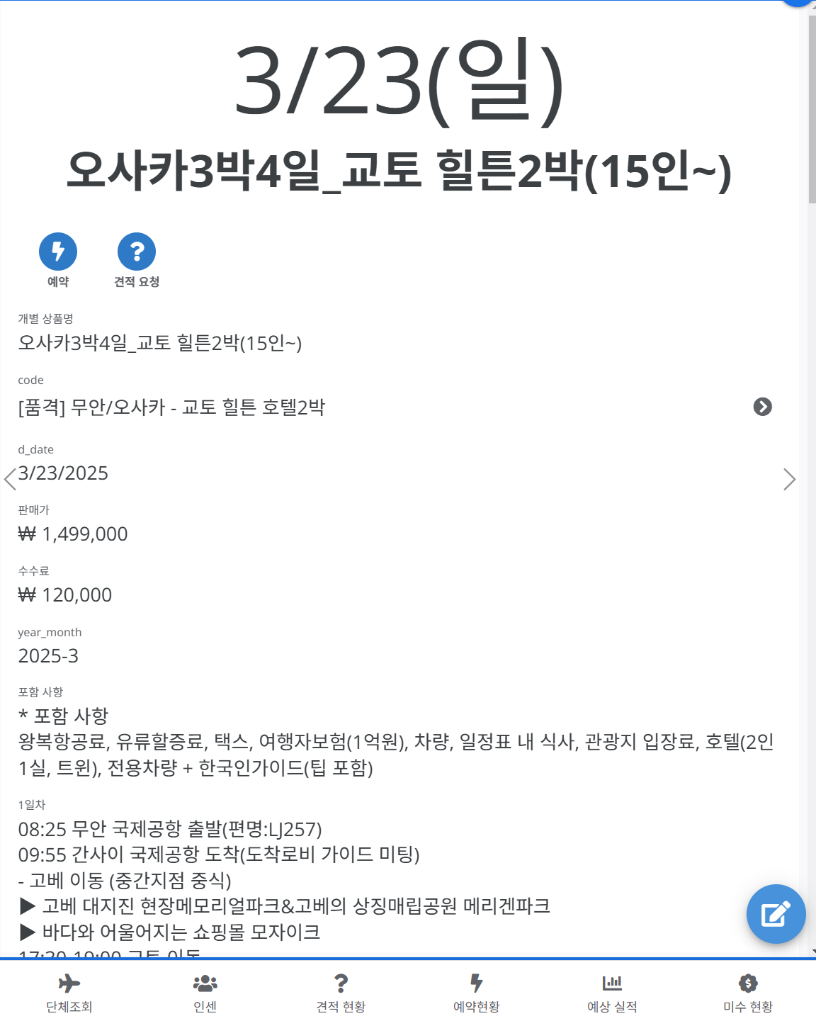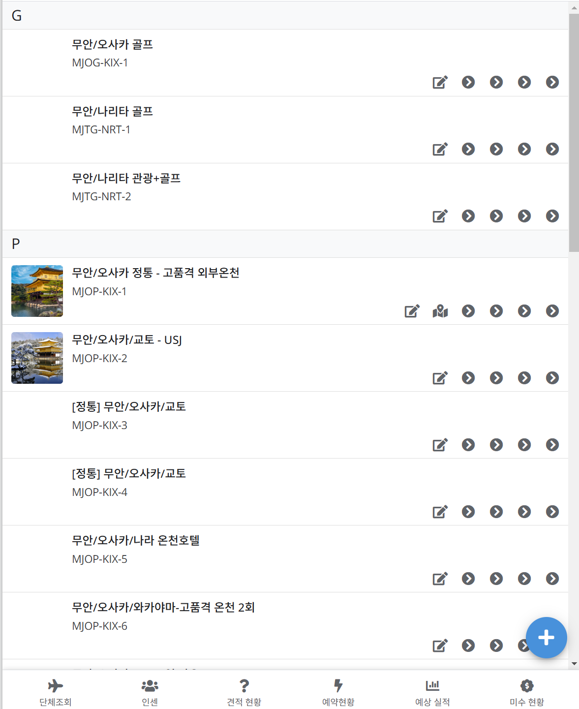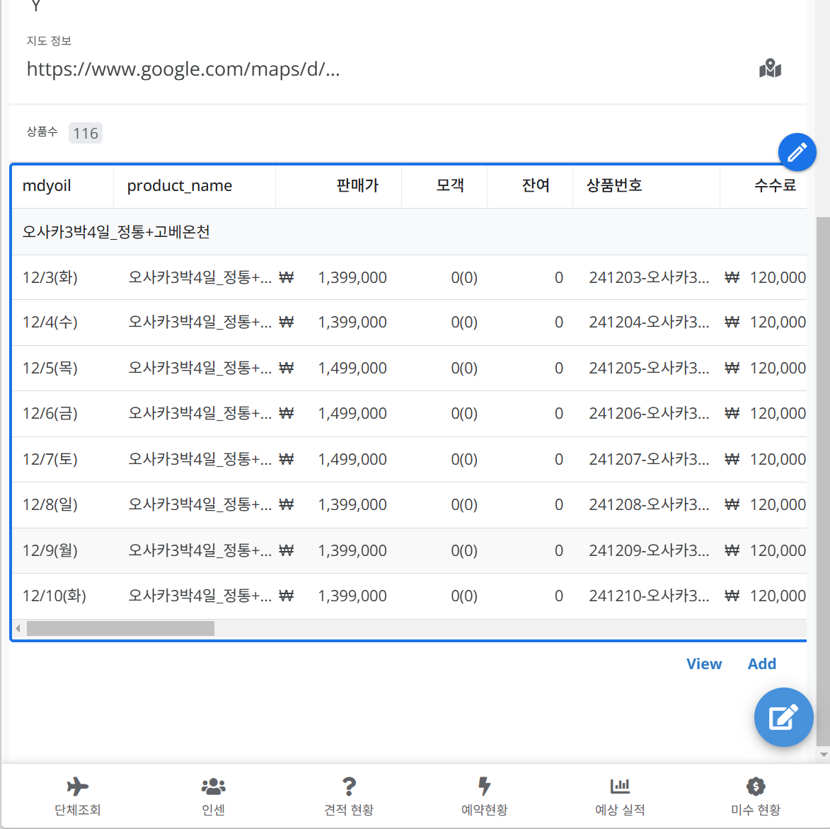 상품 재고 리스트로서, 여행 ERP 의 핵심이다.